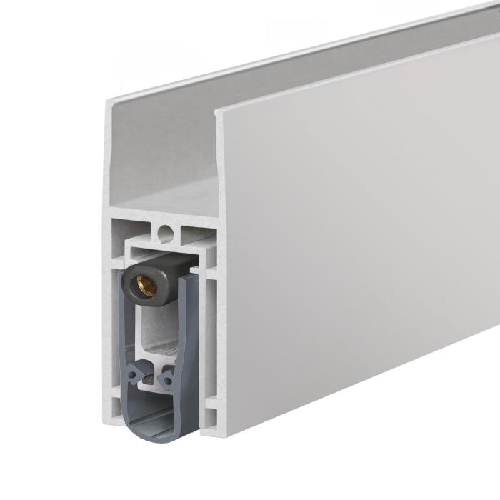 for single and double-leaf all-glass doors, seal height 18 mm, 48 dB sound insulation value, smoke-proof, whisper seal, one-sided release with parallel lowering, no grinding, automatic compensation for uneven floors, can be shortened to the next smaller bearing length, incl. Planet stop plate, type 1 (stainless steel), screws and cover plates, 2 pcs. VHB sections (double-sided adhesive tape)