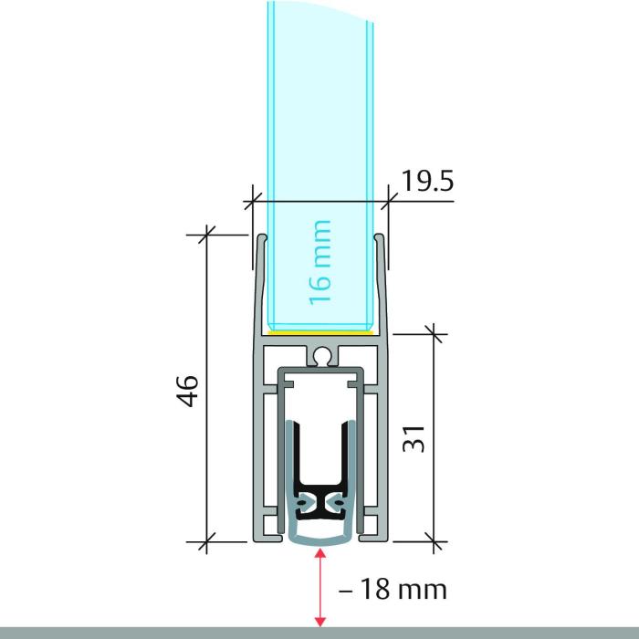 Lowering seal Planet KG-F16s, aluminium, inox effect, Glass thickness 16.76 mm, to glue, L = 959 mm