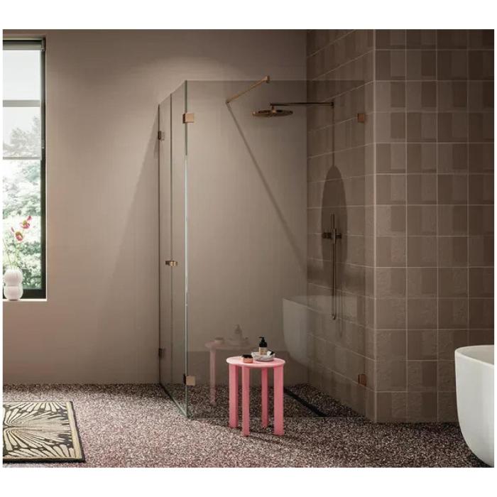 Winkelverbinder Juna mit Langlochplatte, Messing, Kupfer PVD gebürstet, Glasstärke 6 / 8 / 10 mm, Glas/Wand 90°
