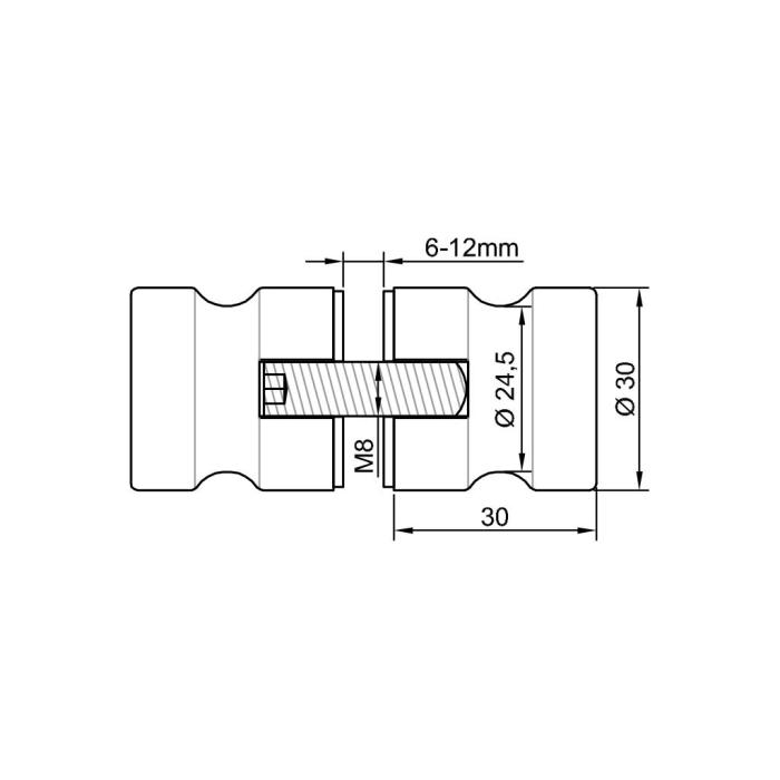 Glastürknopf Serie Skyline, Ø 30 mm, Aluminium, Chromeffekt, Glasstärke 6 - 10 mm, Glasmontage (Paar)