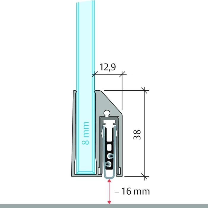 Drop-down seal Planet KG-A8 narrow, aluminium, BlackLine RAL 9005 matt, Glass thickness 8 mm, to glue, L = 834 mm