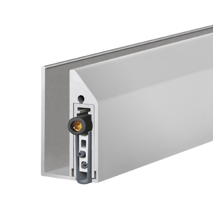 für 1- und 2-flügelige Ganzglastüren, Dichtungshöhe 18 mm, 48 dB Schalldämmwert (7 mm Bodenabstand), rauchdicht, Flüsterdichtung, einseitige Auslösung mit Parallelabsenkung, kein Schleifen, autom. Ausgleich bei schiefem Boden, kann bis zur nächst kleineren Lagerlänge gekürzt werden, inkl. Abdeckplatten